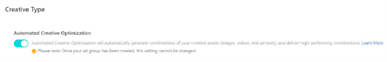 3) 决定是否要使用TikTok的自动创意优化。这是TikTok为小企业创建的工具之一。根据你提供的图片、视频和文案建立广告,不断地测试出效果较好的素材。