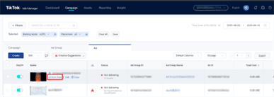跟Facebook广告的后台类似,TikTok的广告后台也可以通过广告系列>广告组>广告,可以一层一层地查看广告效果。