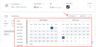 b)从列表中选择一些参数,然后就能看到3月1日至7月31日期间你的广告效果。