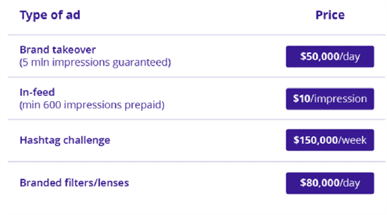 根据不同的客户不同需求,有不同计费方式选择。另外,下面展示目前tiktok广告收费标准。